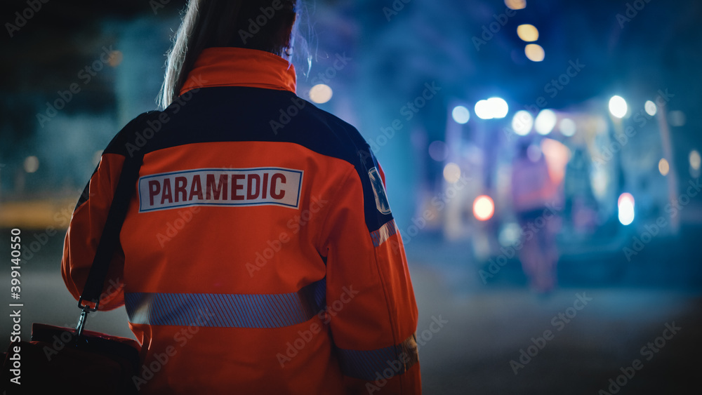 Female EMS Paramedic Proudly Standing With Her Back Turned to Camera in
