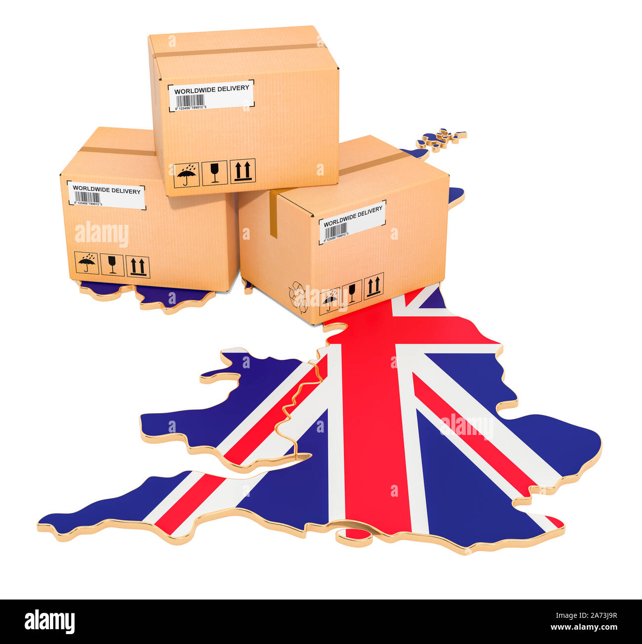 Parcels on the British map Shipping in the Great Britain concept 3D