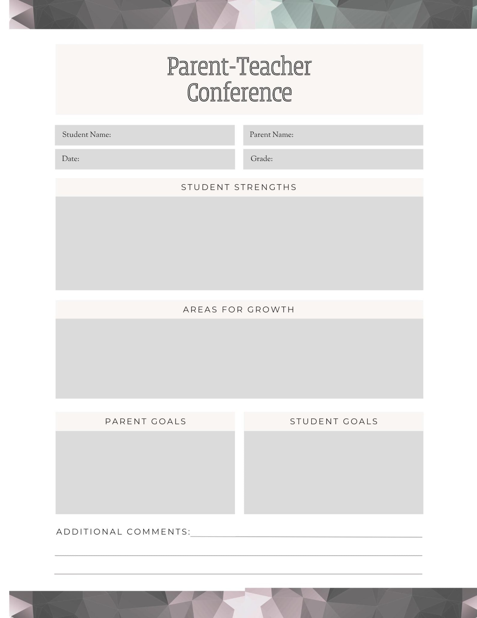 Parent Teacher Conference Sheet by Ashley Stover TPT