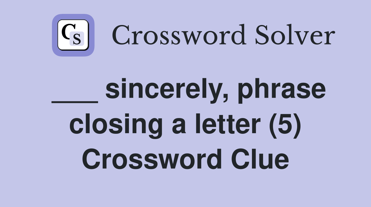 sincerely phrase closing a letter (5) Crossword Clue Answers