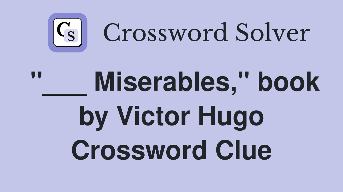 Miserables quot book by Victor Hugo Crossword Clue Answers Crossword