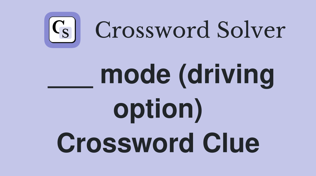 mode (driving option) Crossword Clue Answers Crossword Solver