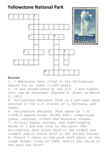 Yellowstone National Park Crossword Teaching Resources