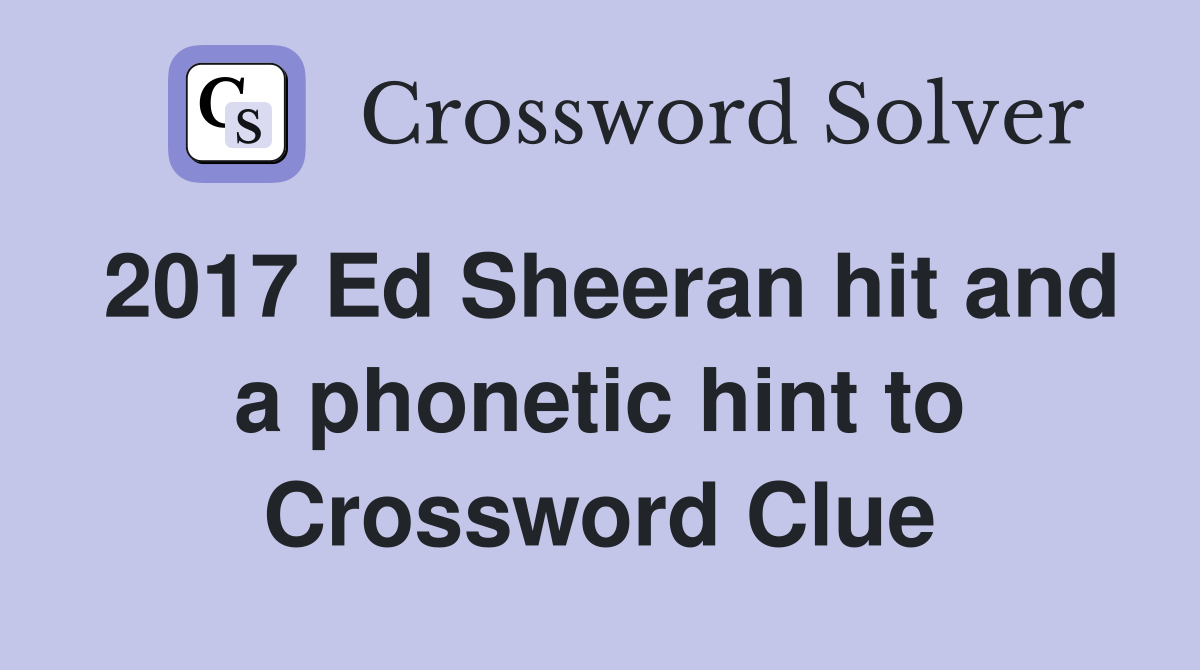 2017 Ed Sheeran hit and a phonetic hint to Crossword Clue Answers