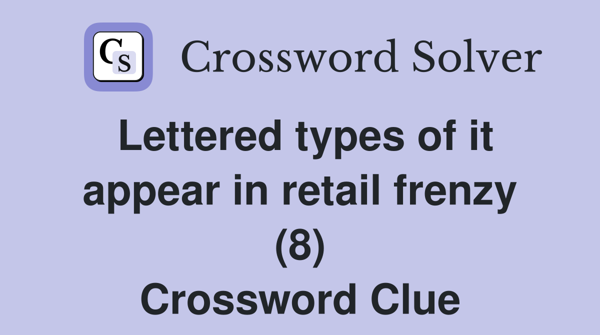 Lettered types of it appear in retail frenzy (8) Crossword Clue