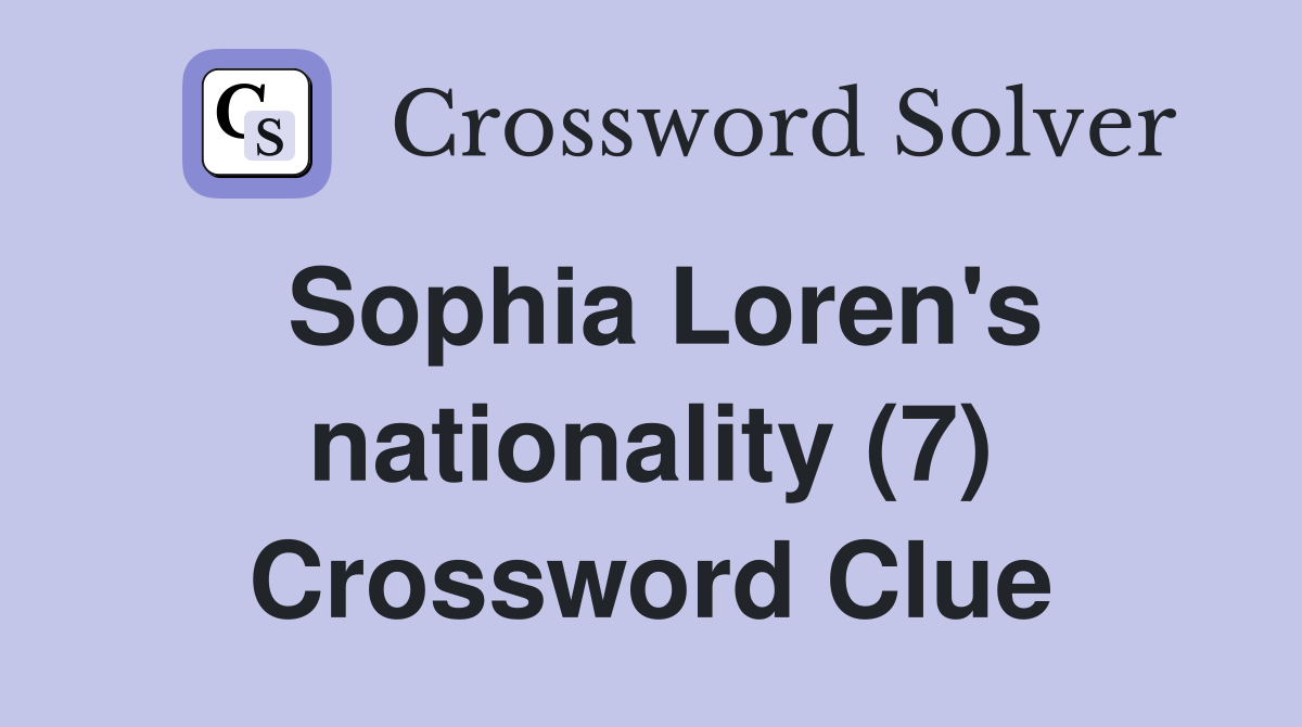 Sophia Loren #39 s nationality (7) Crossword Clue Answers Crossword Solver
