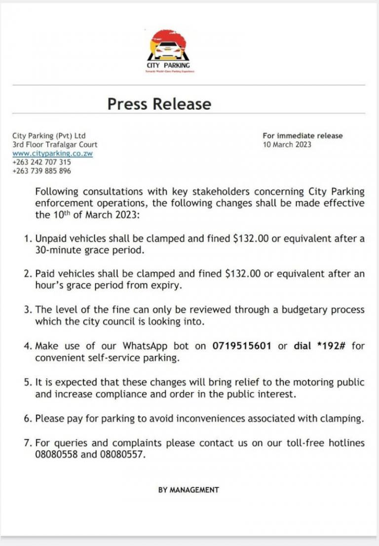 City Parking statement on parking madness changes effective 10 March