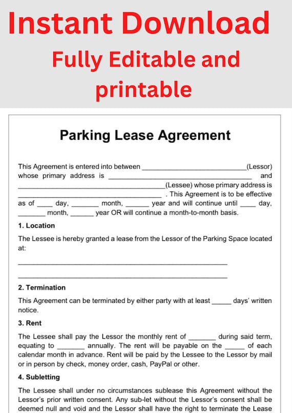 Fully Editable Parking Space Lease Agreement Template I Easy and Simple