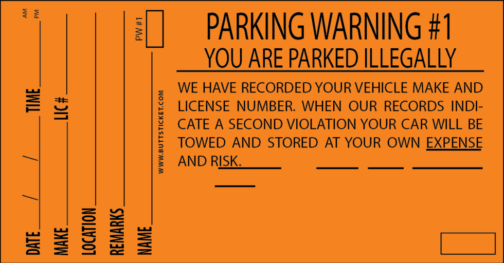 quot No Parking quot Car Truck Illegal Violation Warning Form (100 Sheets)