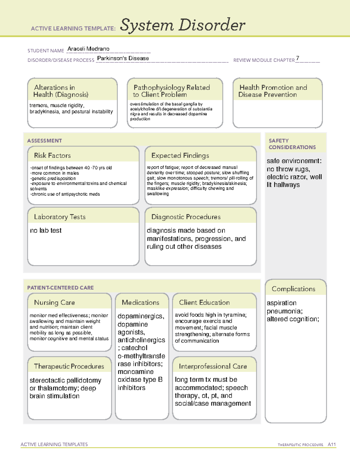 Parkinson #39 s Disorder Active Learning Template (Chapter 7) Studocu