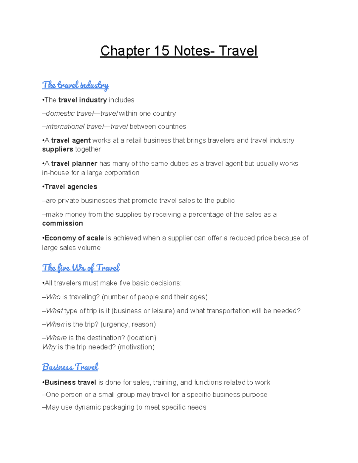 Chapter 15 Notes Travel (hosp tour 2) Chapter 15 Notes Travel The