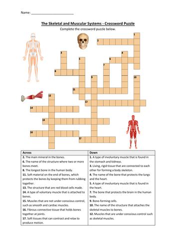 The Skeletal and Muscular Systems Crossword Puzzle Worksheet Activity