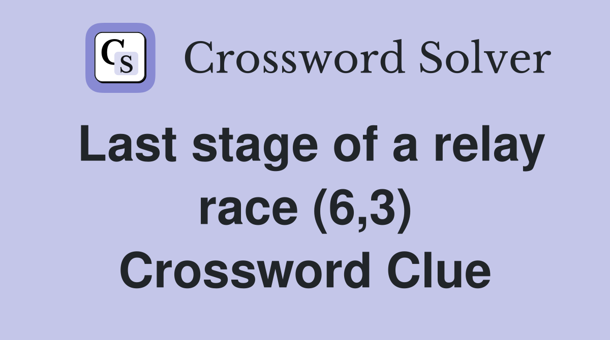 Last stage of a relay race (6 3) Crossword Clue Answers Crossword