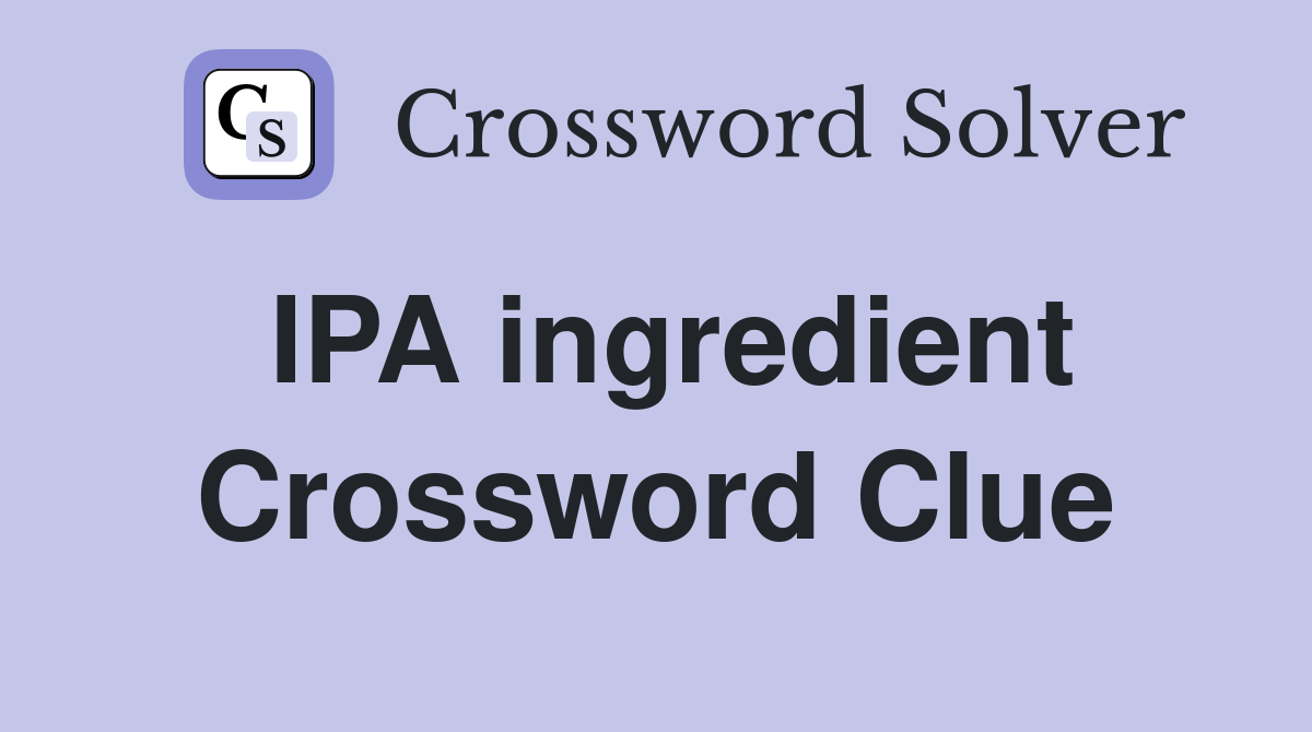 IPA ingredient Crossword Clue Answers Crossword Solver
