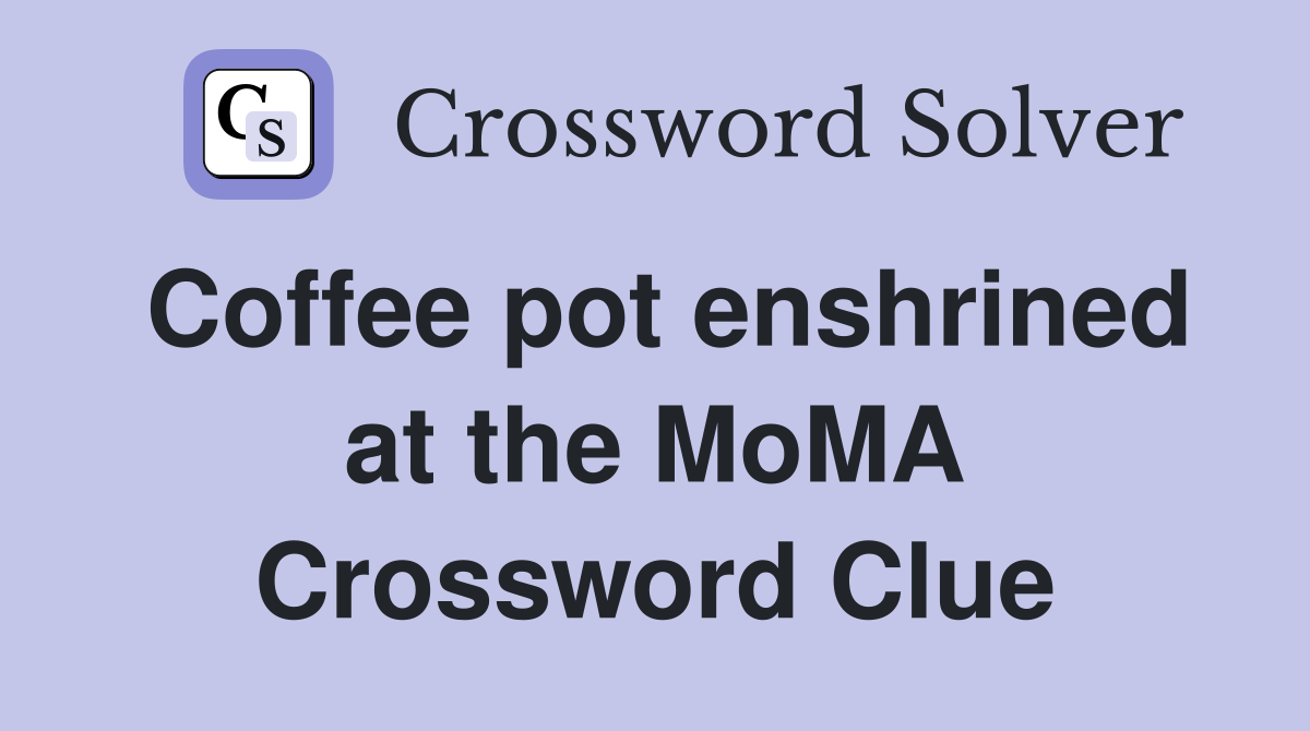 Coffee pot enshrined at the MoMA Crossword Clue Answers Crossword