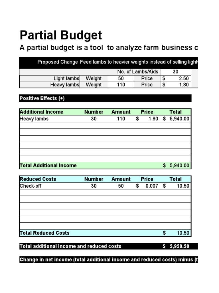 Partial Budget: A Partial Budget Is A Tool To Analyze Farm Business