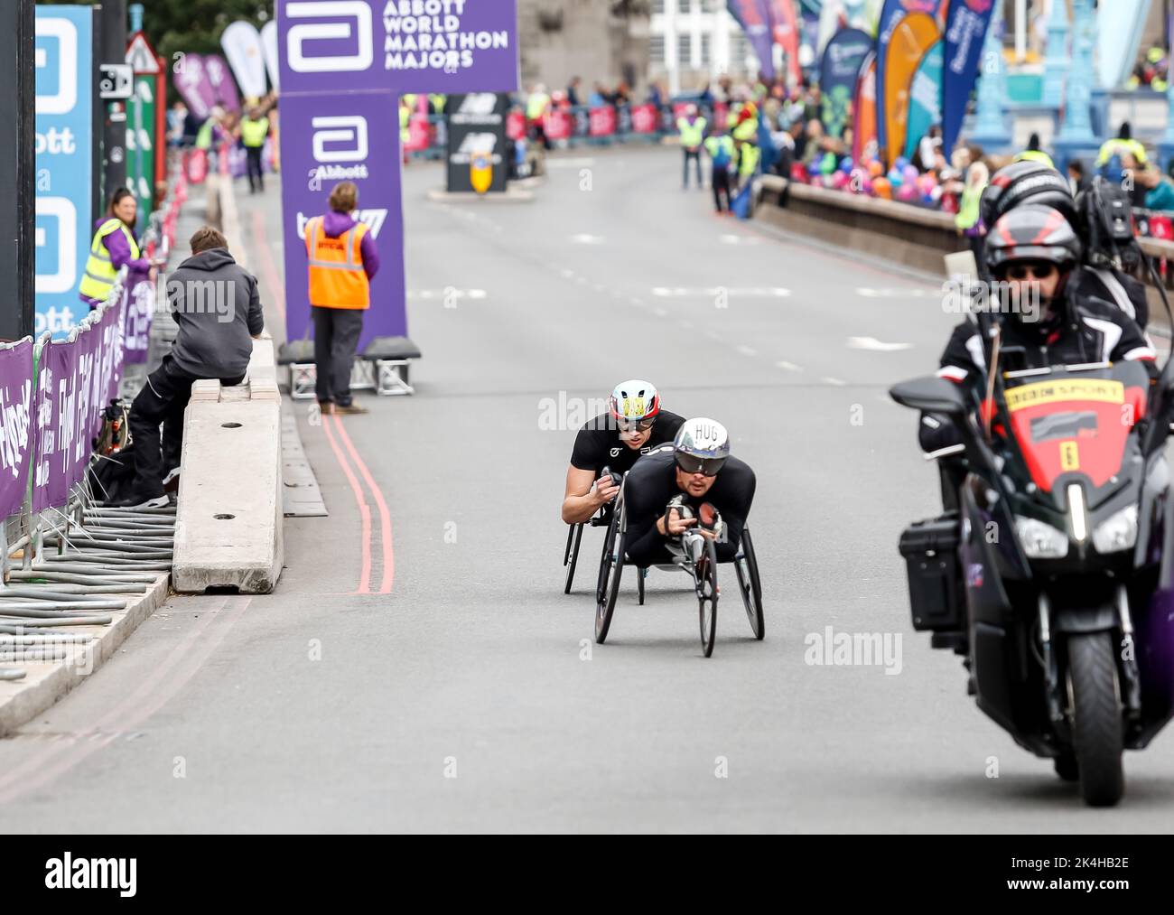 London UK 02nd Oct 2022 Wheelchair athletes pass through the Tower
