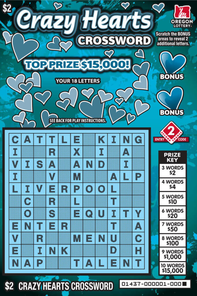 Crazy Hearts Crossword Lottery Scratch Tickets Oregon Lottery