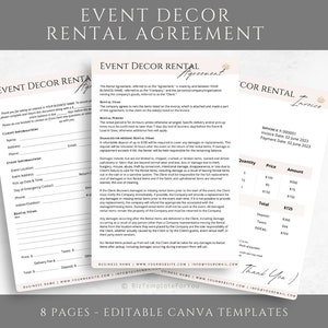 Editable Event Decor Rental Agreement Party Equipment Rental Etsy