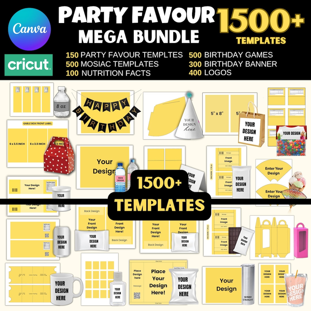 1500 Party Favor Templates Bundle Canva Party Favor Templates Chip