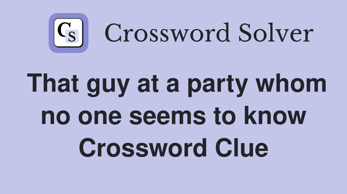 That guy at a party whom no one seems to know Crossword Clue Answers