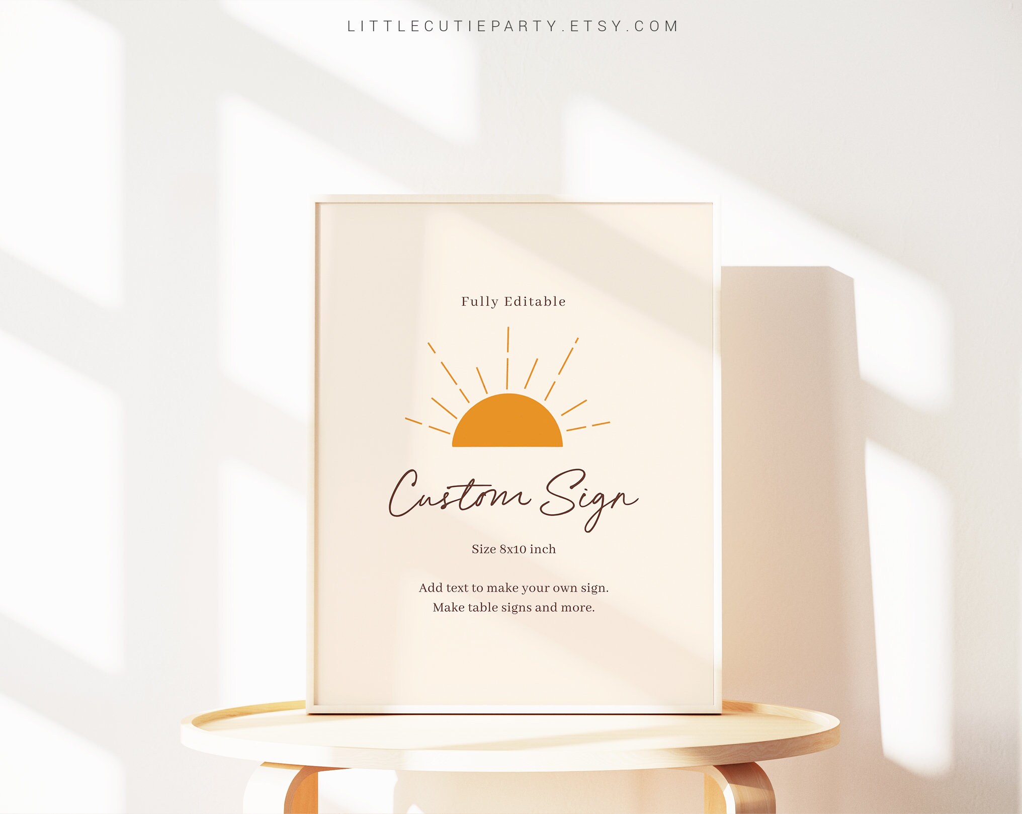 Editable Boho Sun Party Sign Template Sun Baby Shower Custom Etsy