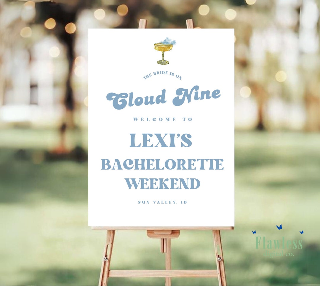On Cloud 9 Bachelorette Sign Template the Bride is on Cloud 9 Sign
