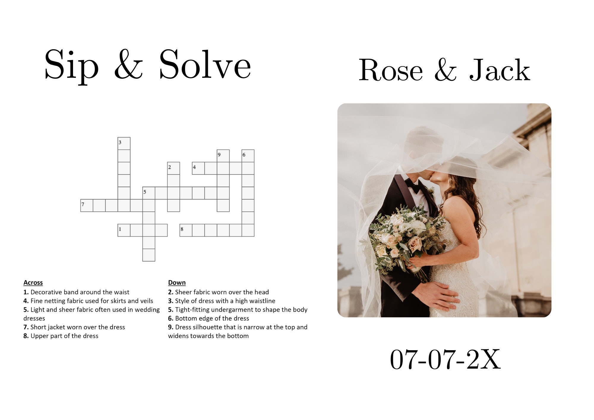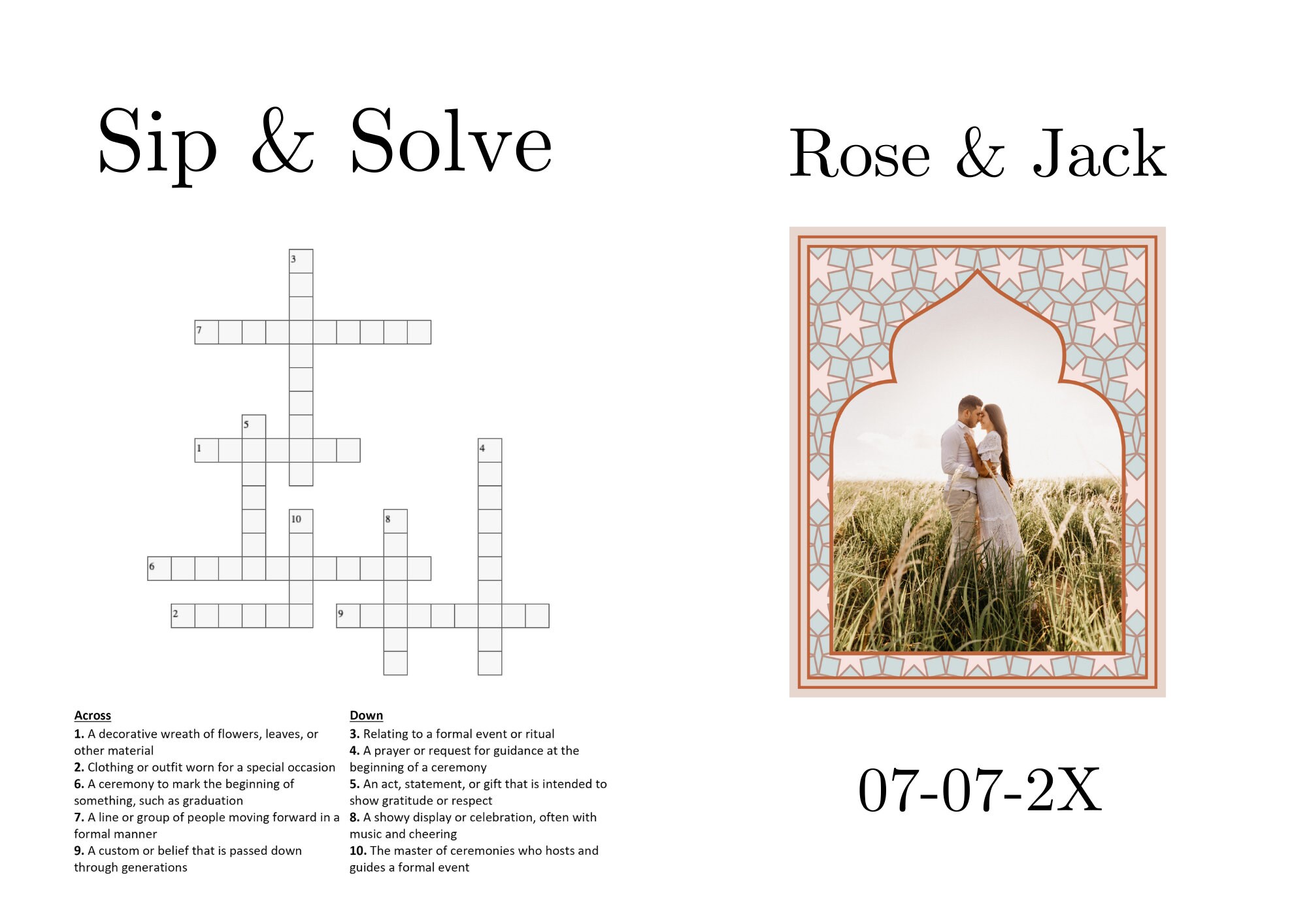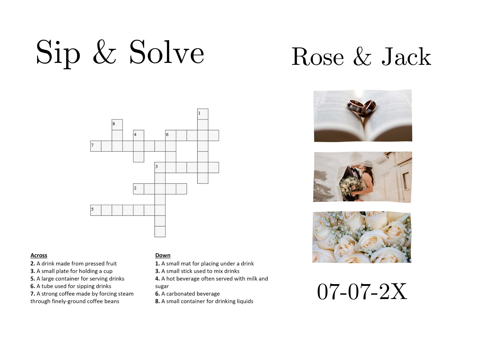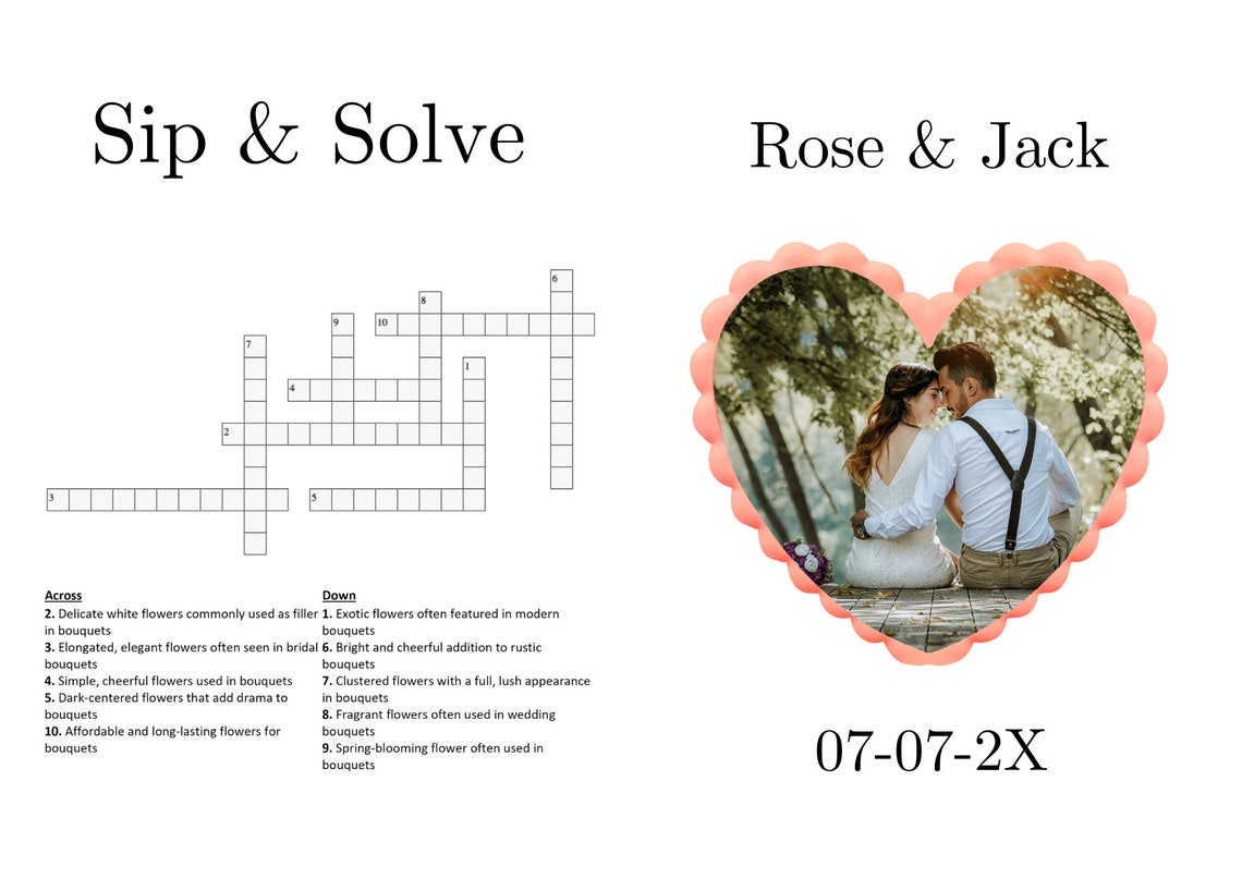 10 Sip and Solve Wedding Crossword Puzzle Newspaper Wedding Program