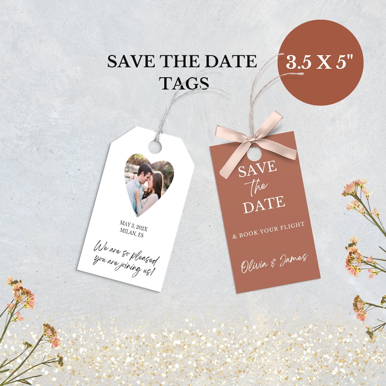 Silver and Blush Passport Luggage Tag Save the Date Card Travel