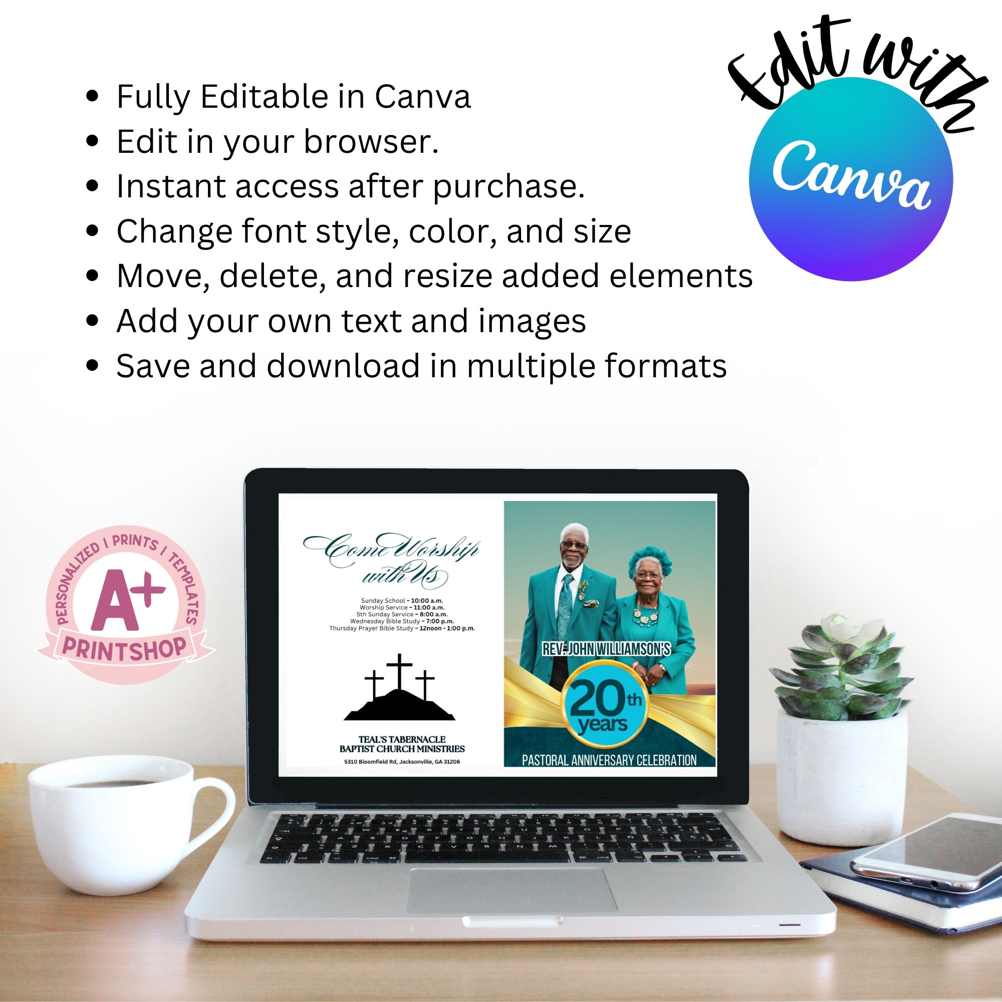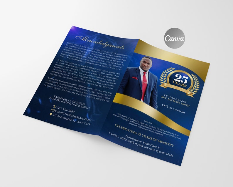 Church / Pastoral Anniversary Program Template Fully Editable in Corjl