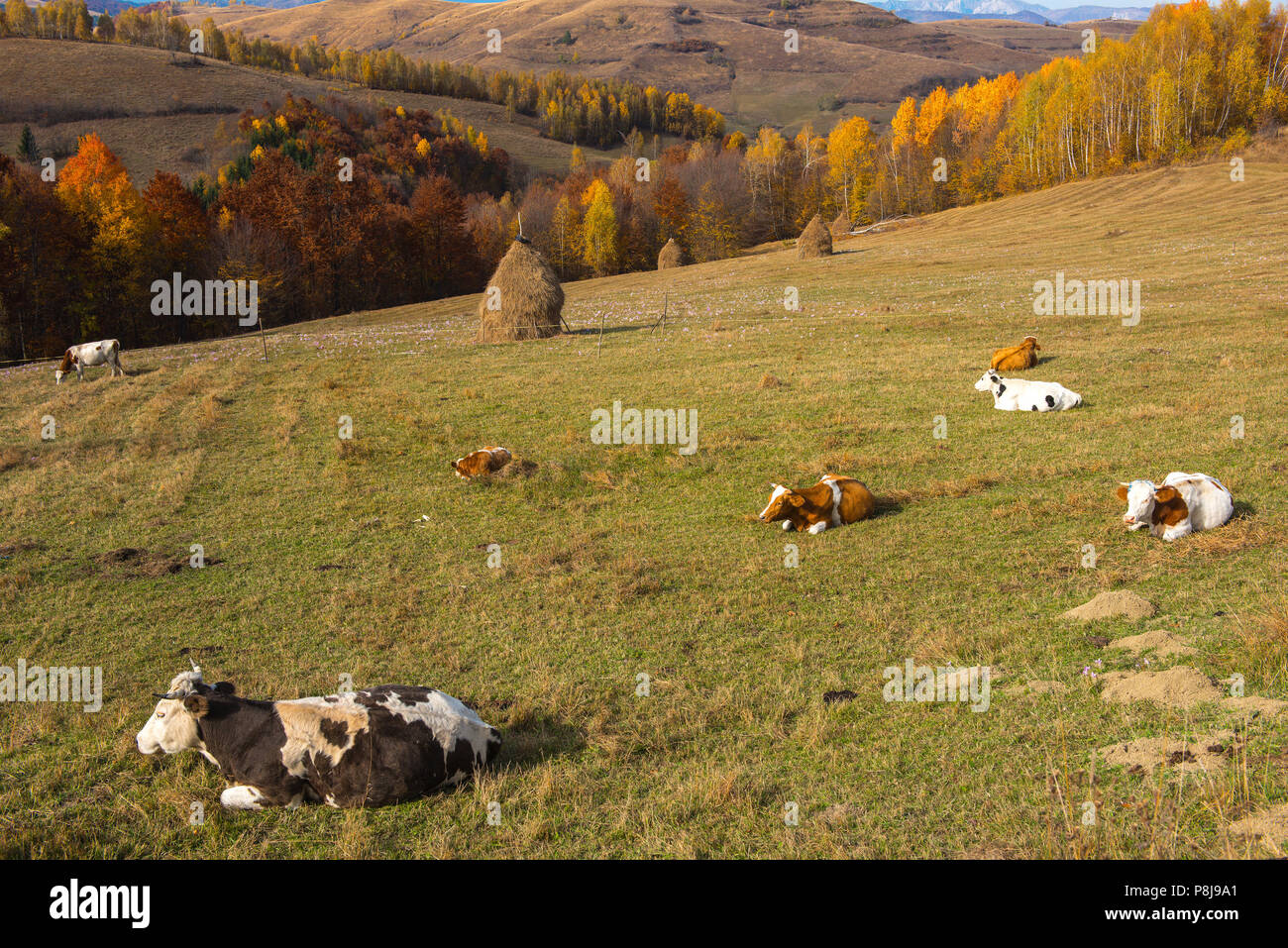 Cows grazing pasture in mountain meadow Stock Photo Alamy
