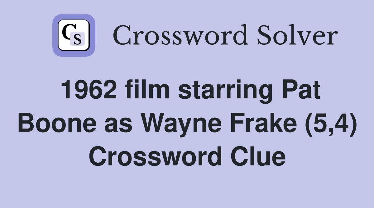 1962 film starring Pat Boone as Wayne Frake (5 4) Crossword Clue