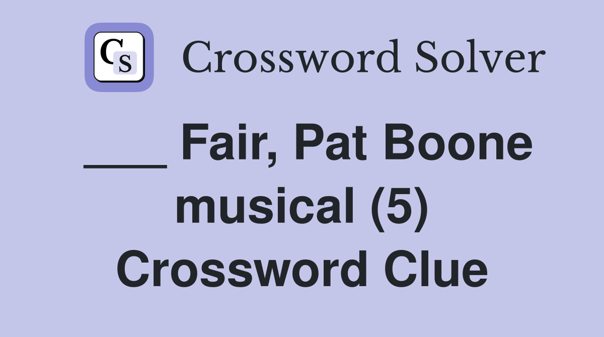 Fair Pat Boone musical (5) Crossword Clue Answers Crossword Solver