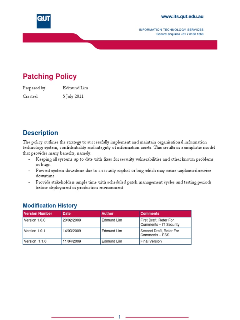 System Patching Policy docx System Patching Policy Johnathon