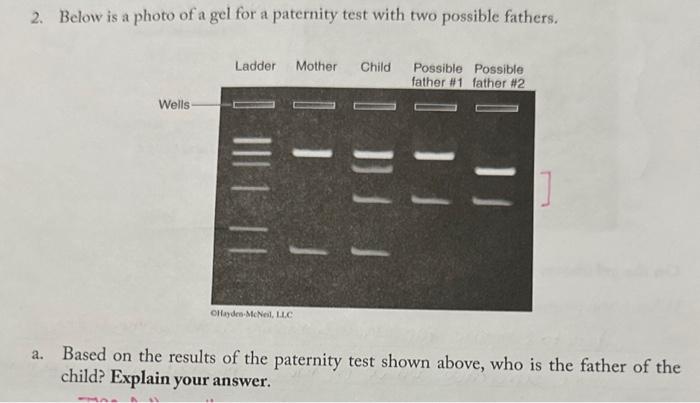 Solved 2 Below is a photo of a gel for a paternity test Chegg com