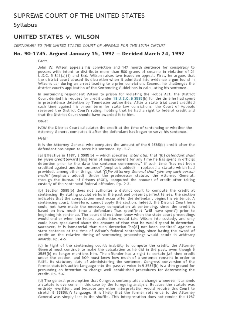 Digest US vs Wilson 3 24 92 PDF Sentence (Law) United States
