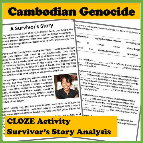 Cambodian Genocide Reading Comprehension Worksheet and Power