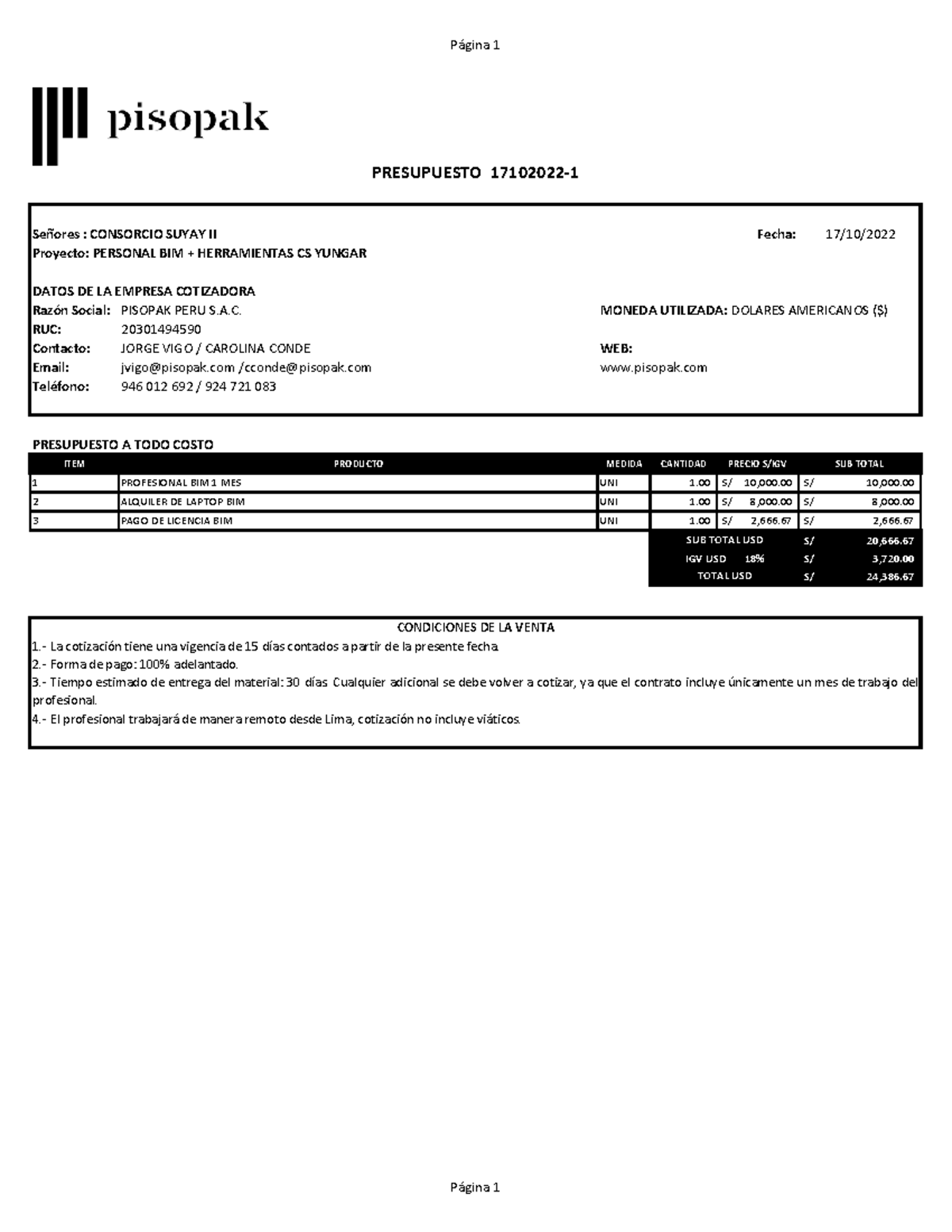 Presupuesto BIM CS Yungar P·gina 1 SeÒores : CONSORCIO SUYAY II