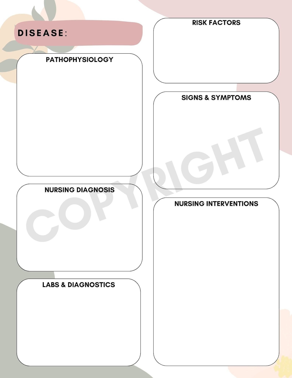 Nurse Disease Template Etsy UK