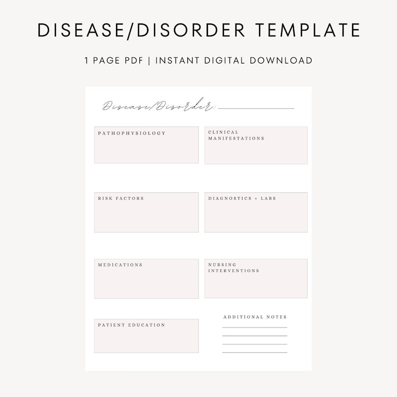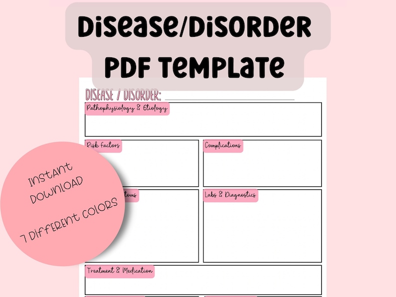 Disorder Template Disease Template Nursing School Study Etsy