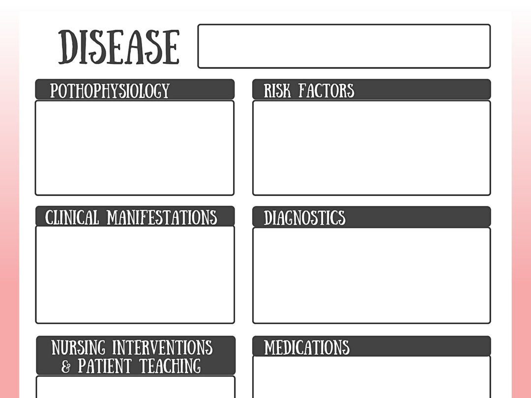 Disease Template Pathophysiology Nursing Notes Template Etsy