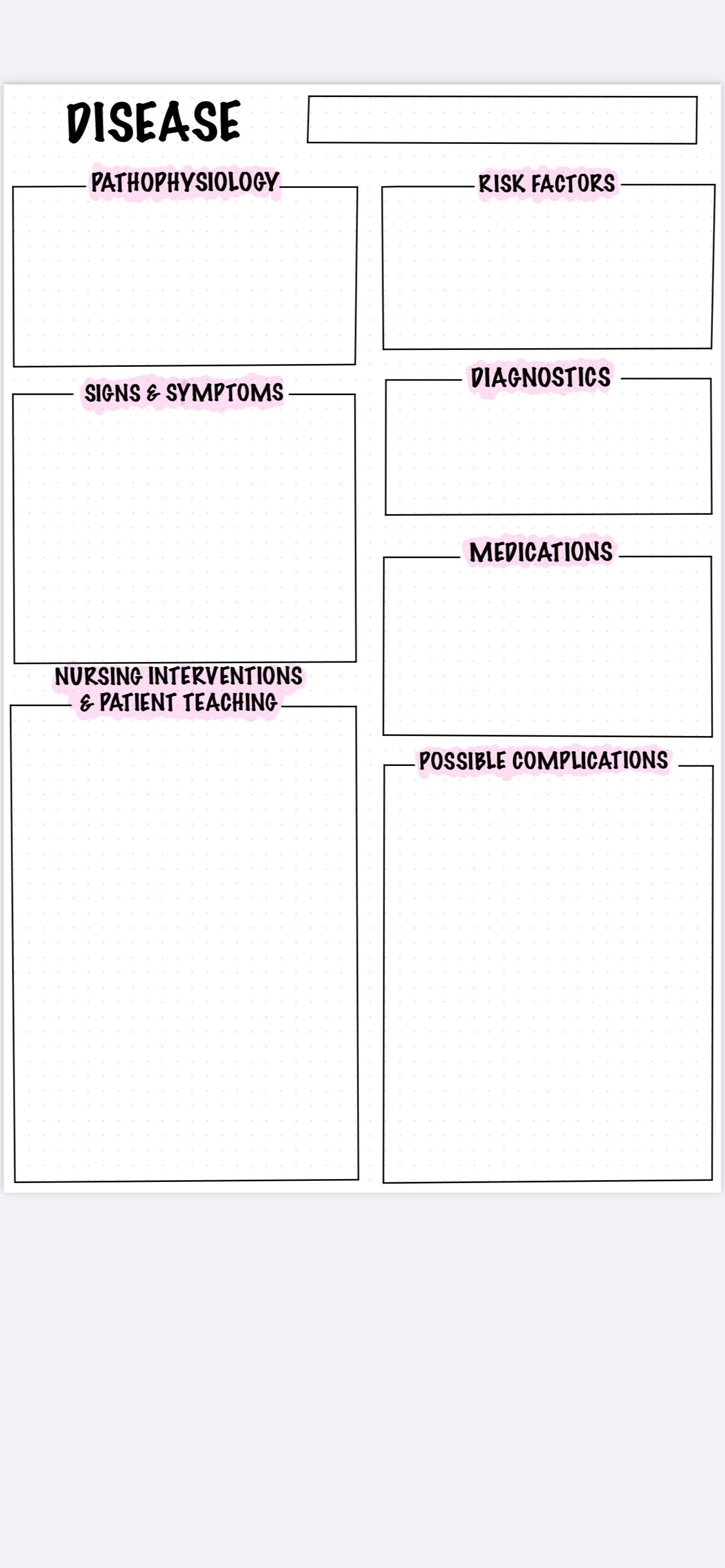 Disease / Patho Nursing Notes Template Etsy