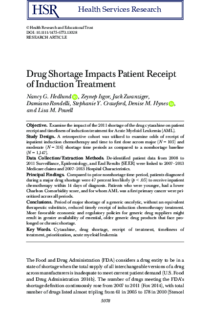 (PDF) Drug Shortage Impacts Patient Receipt of Induction Treatment