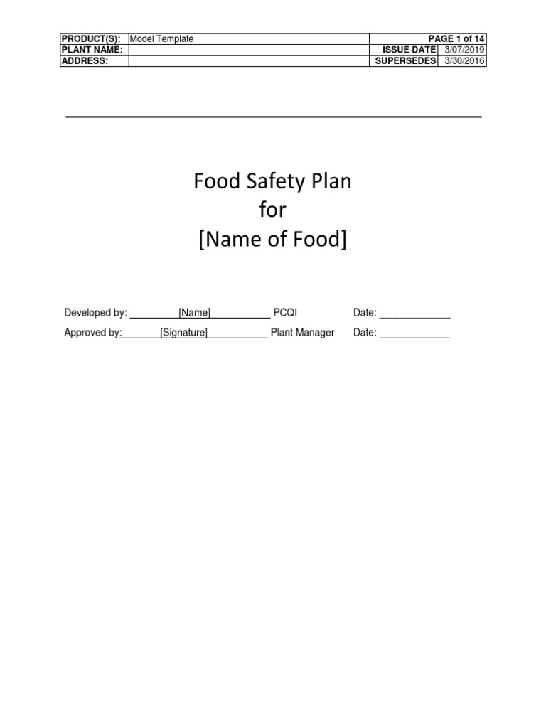 Food Safety Plan Template