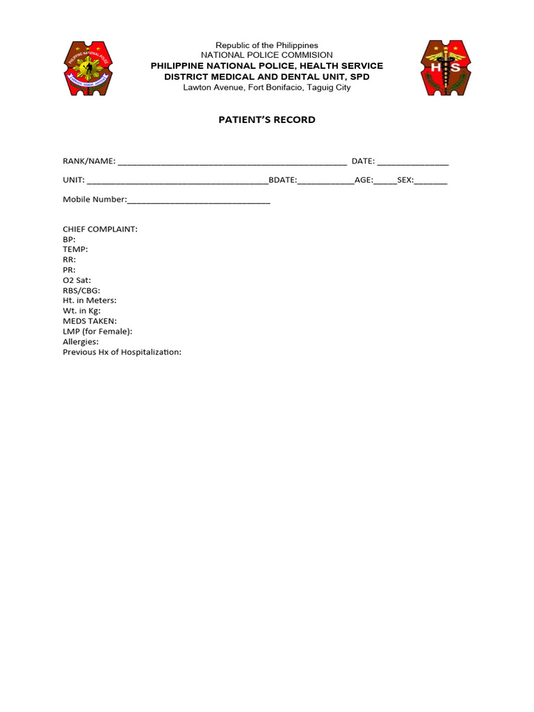 Patients Record Form Download Free PDF Health Care Medicine