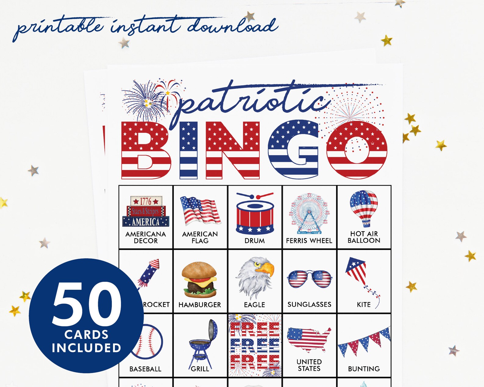 Patriotic Bingo Cards: Printable Bingo 50 Cards 4th of July Etsy
