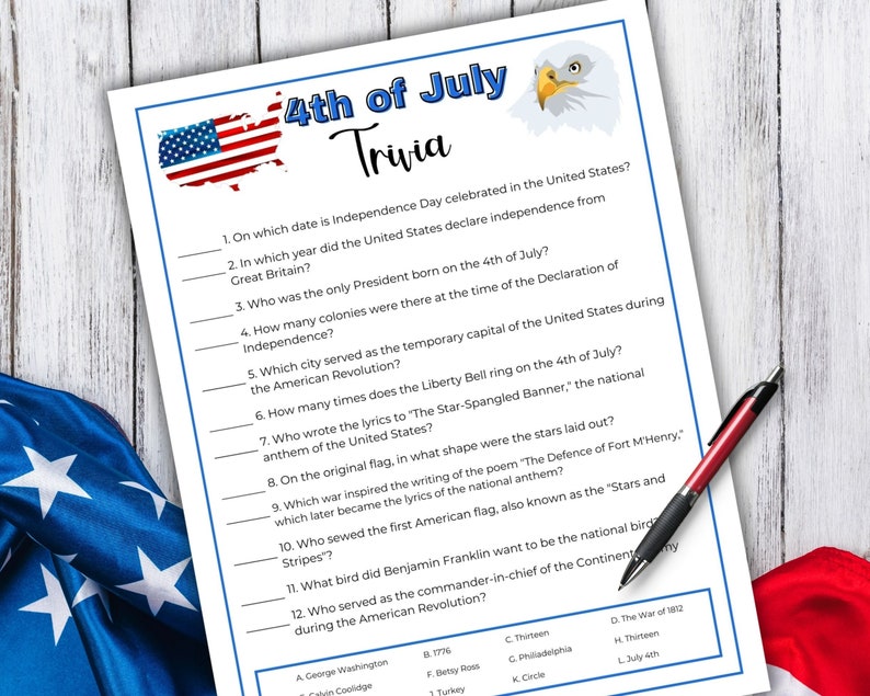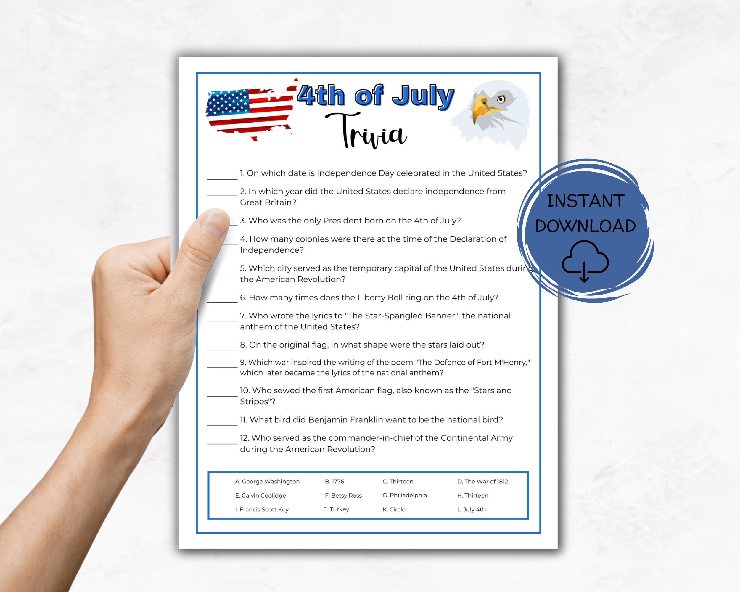 4th of July Patriotic Trivia USA Independence Day Printable Quiz Fourth