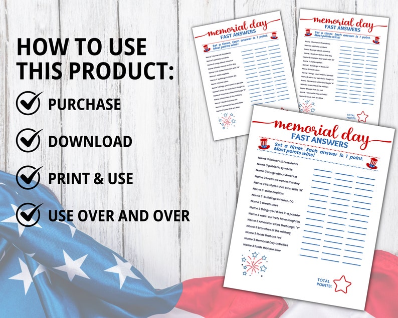 Memorial Day Fast Answers Game Memorial Day Games Patriotic Games