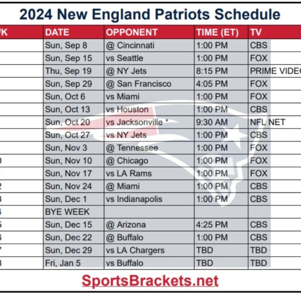 Patriots Schedule 2024: Divisional Games Player Transactions