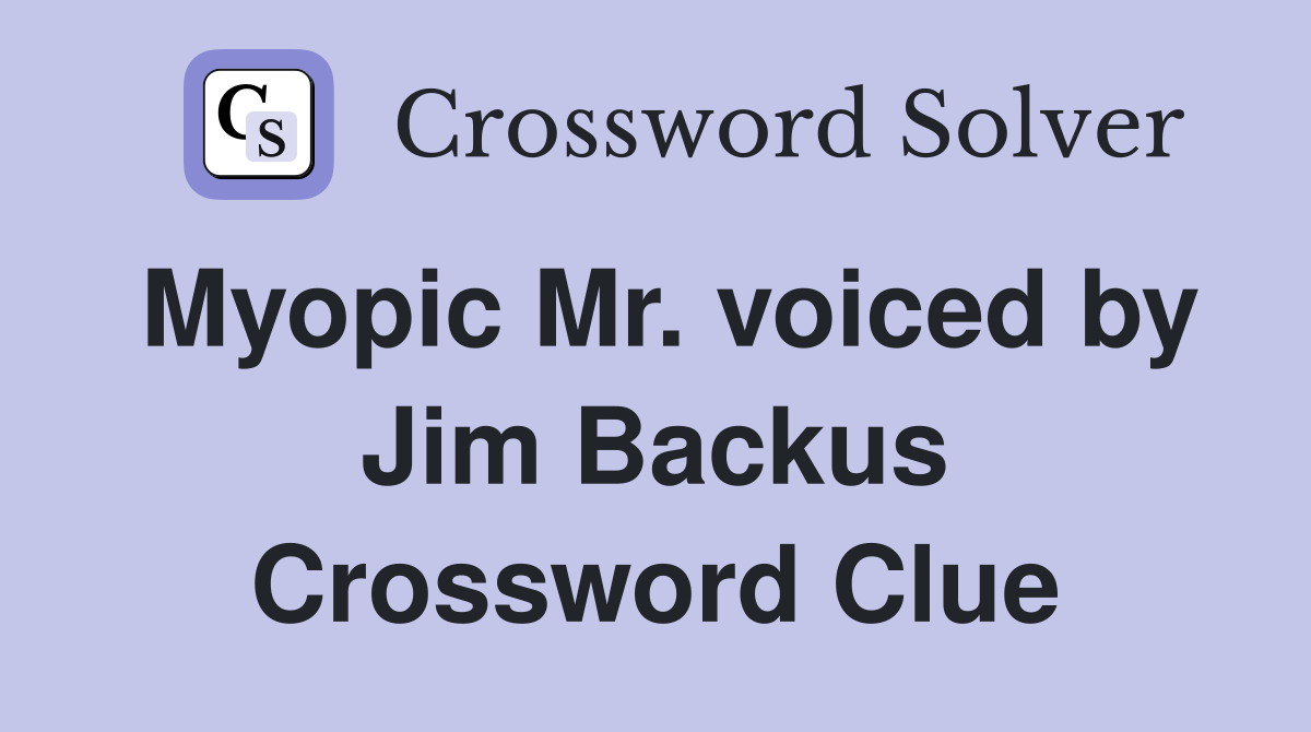 Myopic Mr voiced by Jim Backus Crossword Clue Answers Crossword Solver
